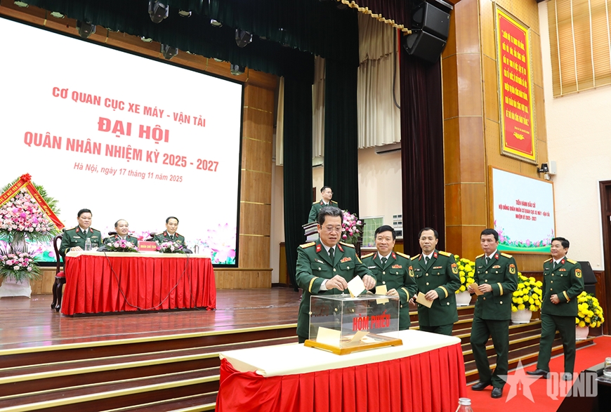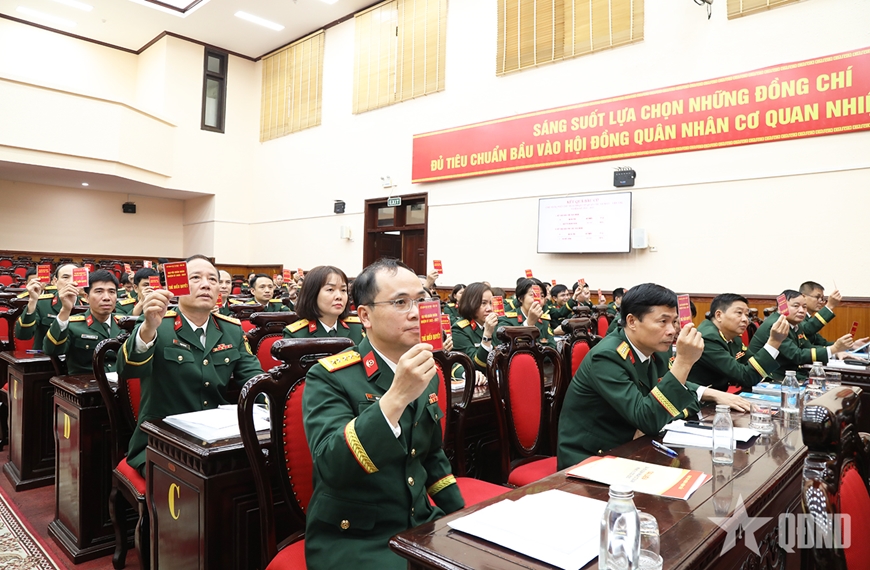 Tại đại hội, các đại biểu đã bỏ phiếu bầu Hội đồng quân nhân cơ quan Cục Xe máy - Vận tải nhiệm kỳ 2025-2027 với tỷ lệ tín nhiệm cao.