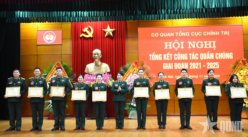 Nhân dịp này, Tổng cục Chính trị đã trao khen thưởng tặng 22 tập thể và 55 cá nhân có thành tích xuất sắc trong thực hiện công tác quần chúng Cơ quan Tổng cục Chính trị giai đoạn 2021-2025. Báo Quân đội nhân dân có 2 tập thể và 3 cá nhân được khen thưởng.