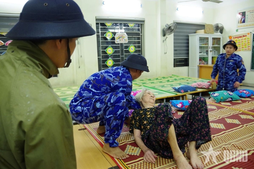 Nghị định số 200/2025/NĐ-CP quy định một số điều liên quan đến công trình phòng thủ dân sự chuyên dụng. Trong ảnh: Cán bộ, chiến sĩ Đoàn Đặc nhiệm phòng chống tội phạm ma túy số 1 (Bộ tư lệnh Cảnh sát biển) hỗ trợ người dân đến nơi tránh trú bão số 3 (Wipha). Ảnh: qdnd.vn