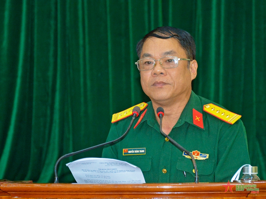 Đại tá Nguyễn Thăng Thanh, Bí thư Đảng ủy, Phó giám đốc Công ty 74 phát động phong trào thi đua. |