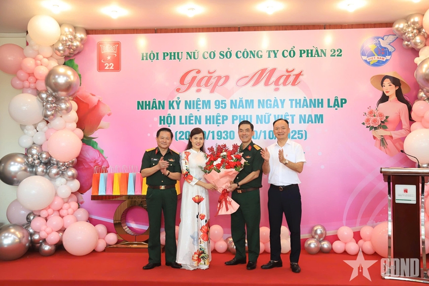 Lãnh đạo, chỉ huy Công ty Cổ phần 22 tặng hoa chúc mừng Hội Phụ nữ Công ty.