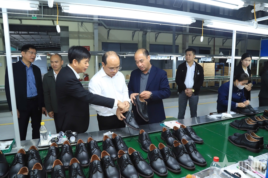 Các đại biểu tham quan Nhà máy Giầy trực thuộc Công ty Cổ phần 26.
