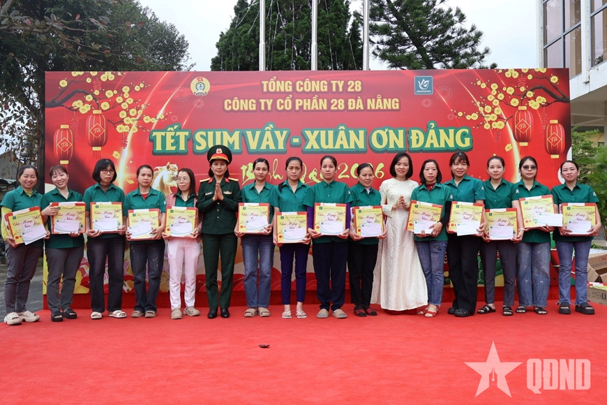 Phát biểu tại chương trình, Trung tá Hồ Thanh Thủy, Bí thư Đảng ủy, Tổng giám đốc Công ty Cổ phần 28 Đà Nẵng nhấn mạnh: Chương trình “Tết sum vầy - Xuân ơn Đảng” là hoạt động thường niên mang ý nghĩa nhân văn sâu sắc; thể hiện tinh thần tương thân, tương ái, sự quan tâm, động viên kịp thời của lãnh đạo các cấp, giúp đoàn viên công đoàn và người lao động có thêm nghị lực vượt qua khó khăn, yên tâm phấn đấu lao động, sản xuất và công tác trong năm mới 2026.