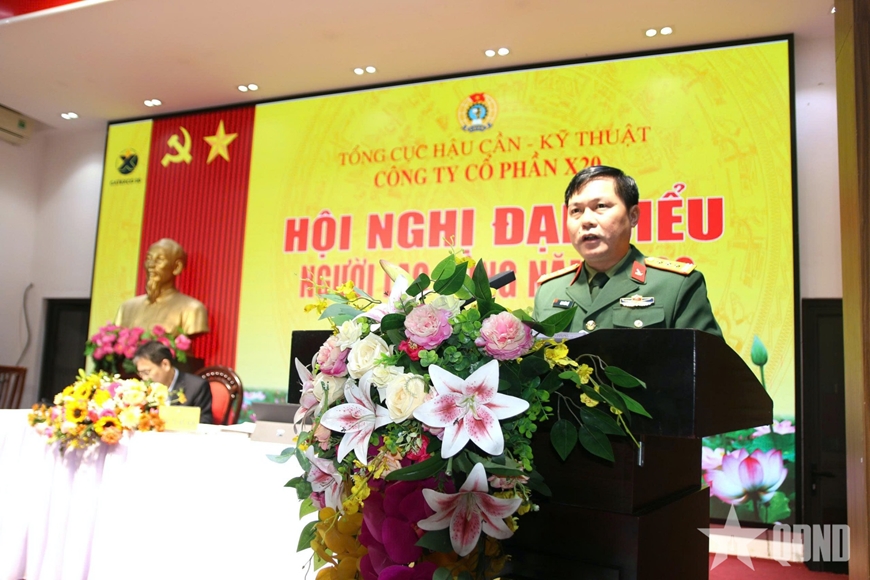 | Thượng tá Chu Văn Đệ, Bí thư Đảng ủy, Chủ tịch Hội đồng quản trị Công ty cổ phần X20 chủ trì hội nghị. |