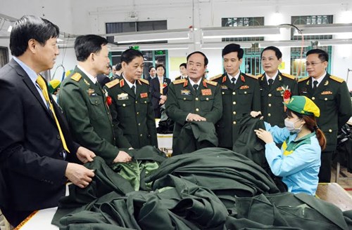 Đại biểu lãnh đạo Bộ Quốc phòng và TCHC tham quan, kiểm tra công tác sản xuất hàng quân trang và hàng xuất khẩu của CTCP X20.