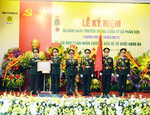Tại buổi lễ, sau khi gắn Huân chương Bảo vệ Tổ quốc hạng Ba và trao Bằng chứng nhận tặng CTCP X20, phát biểu tại buổi lễ, Thượng tướng Trần Đơn đã ghi nhận, biểu dương những thành tích tiêu biểu mà cán bộ, nhân viên, người lao động CTCP X20 đã đạt được trong suốt 60 năm qua. Thượng tướng Trần Đơn nhấn mạnh: Trong những năm tới, tình hình kinh tế-xã hội của đất nước và thế giới còn có nhiều khó khăn, chi phối đến công tác sản xuất, kinh doanh. Đặc biệt, nhiệm vụ xây dựng Quân đội “Cách mạng, chính quy, tinh nhuệ, từng bước hiện đại” đã và đang đặt ra những yêu cầu mới, cao hơn, trực tiếp tác động đến nhiệm vụ của ngành hậu cần quân đội nói chung và nhiệm vụ sản xuất, kinh doanh của CTCP X20 nói riêng. Đồng chí Thứ trưởng Bộ Quốc phòng mong rằng, Đảng ủy, Hội đồng Quản trị, Ban Tổng giám đốc và đội ngũ cán bộ, nhân viên, người lao động CTCP 20 cần quán triệt sâu sắc quan điểm, đường lối chính trị, quân sự của Đảng, Nhà nước, Quân ủy Trung ương, Bộ Quốc phòng, tập trung triển khai nghiêm túc Đề án sắp xếp, đổi mới và phát triển doanh nghiệp quân đội sau khi được Thủ tướng Chính phủ phê duyệt. Tích cực, chủ động nghiên cứu, đổi mới công nghệ và ứng dụng khoa học kỹ thuật tiên tiến trong sản xuất, kinh doanh. Chú trọng thực hiện tốt công tác quản trị doanh nghiệp và nâng cao năng lực quản lý, chỉ huy, điều hành của công ty. Tập trung kiện toàn tổ chức, biên chế theo hướng tinh, gọn, mạnh. Không ngừng nâng cao năng lực lãnh đạo và sức chiến đấu của các cấp ủy Đảng, đẩy mạnh phong trào thi đua Quyết thắng và các phong trào thi đua lao động sản xuất, phát huy tốt truyền thống đơn vị hai lần anh hùng, hoàn hành tốt mục tiêu, chiến lược mà công ty đã đặt ra.