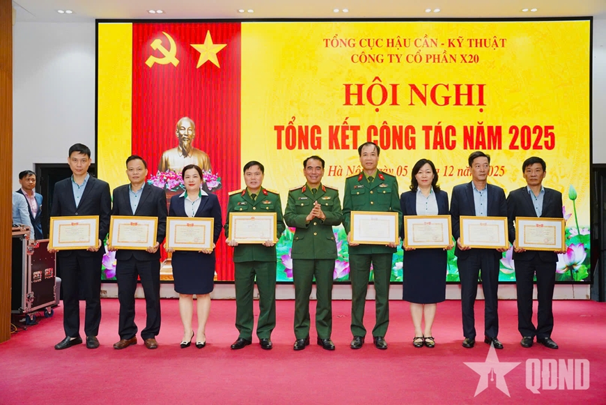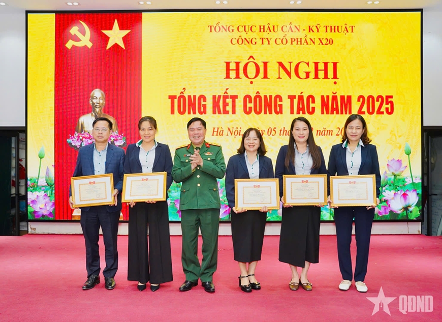 | Thượng tá Chu Văn Đệ, Bí thư Đảng ủy, Chủ tịch Hội đồng quản trị Công ty cổ phần X20 trao danh hiệu thi đua tặng các tập thể đạt thành tích xuất sắc trong Phong trào Thi đua Quyết thắng năm 2025. |