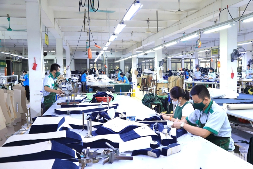 Lãnh đạo Xí nghiệp Đo may Quân đội, Công ty Cổ phần X20 kiểm tra chất lượng sản phẩm.
