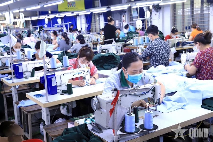 Công nhân Xí nghiệp Đo may Quân đội tích cực làm việc, mong muốn sản phẩm đến với nhân dân vùng lũ sớm nhất.