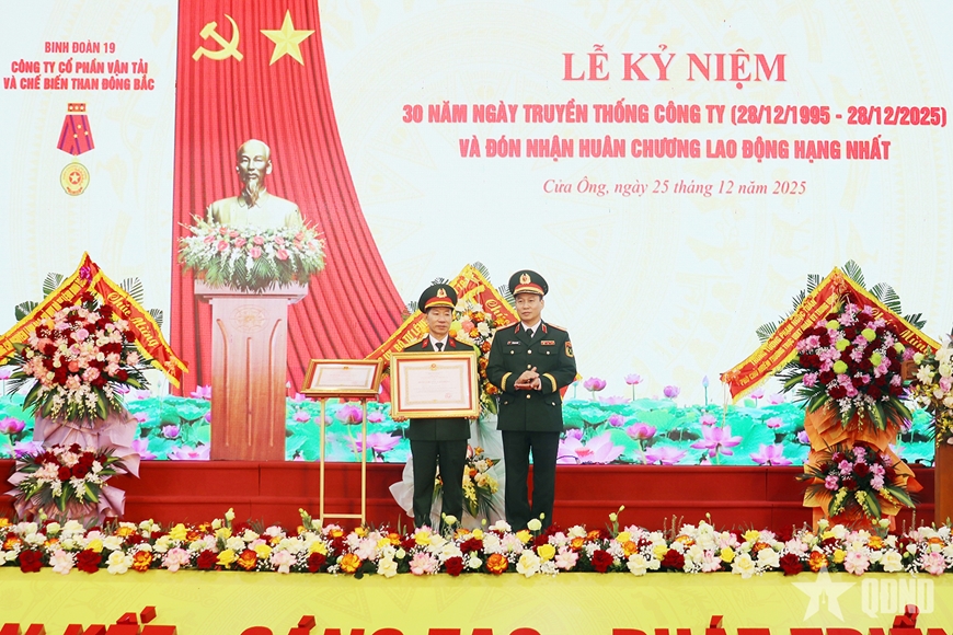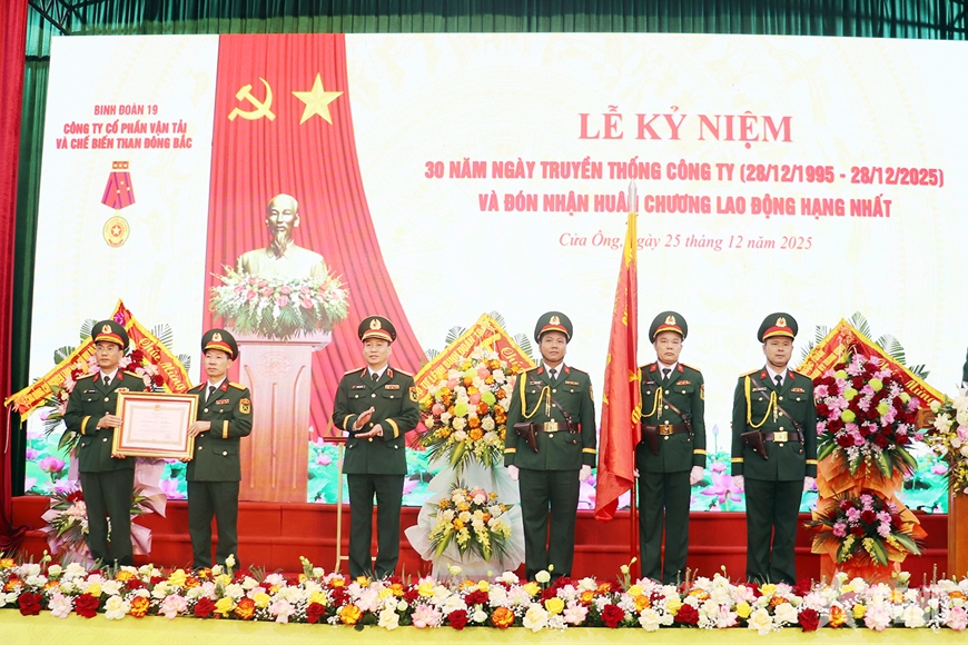 Ngày 25-12, Công ty Vận tải và Chế biến than Đông Bắc (Binh đoàn 19) tổ chức Lễ kỷ niệm 30 năm truyền thống công ty 28-12 (1995-2025) và vinh dự đón nhận Huân chương lao động hạng Nhất của Chủ tịch nước trao tặng. Thiếu tướng Đỗ Mạnh Khảm, Tư lệnh Binh đoàn 19 đến dự.