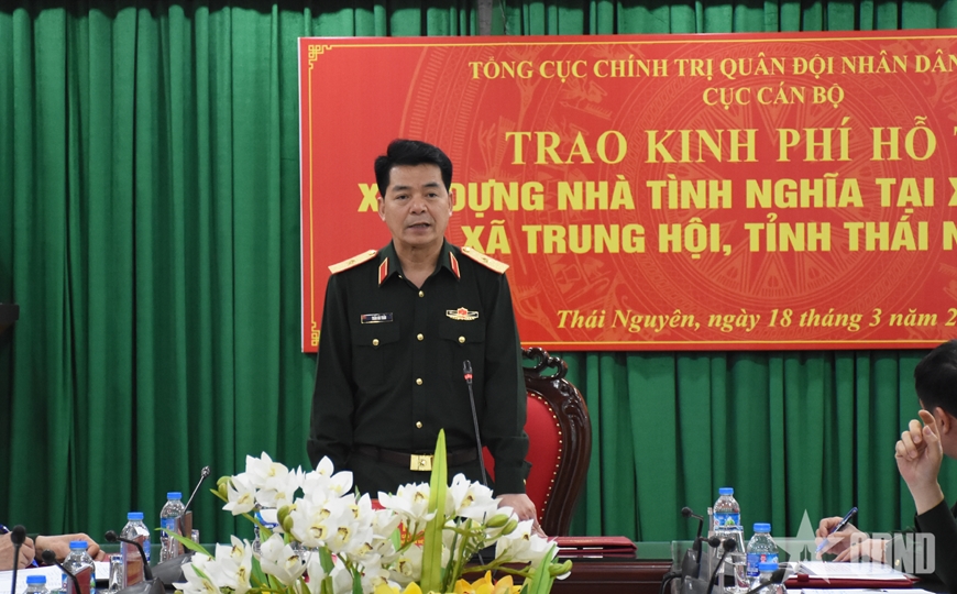 Phát biểu tại buổi trao kinh phí hỗ trợ, Thiếu tướng Trần Hải Tuấn nhấn mạnh: Phát huy truyền thống “Uống nước nhớ nguồn”, “Ăn quả nhớ người trồng cây”, những năm qua, các cơ quan, đơn vị trong toàn quân nói chung và Cục Cán bộ nói riêng luôn tích cực tham gia nhiều hoạt động thiết thực nhằm tri ân các gia đình chính sách, thương binh, bệnh binh và người có công với cách mạng.