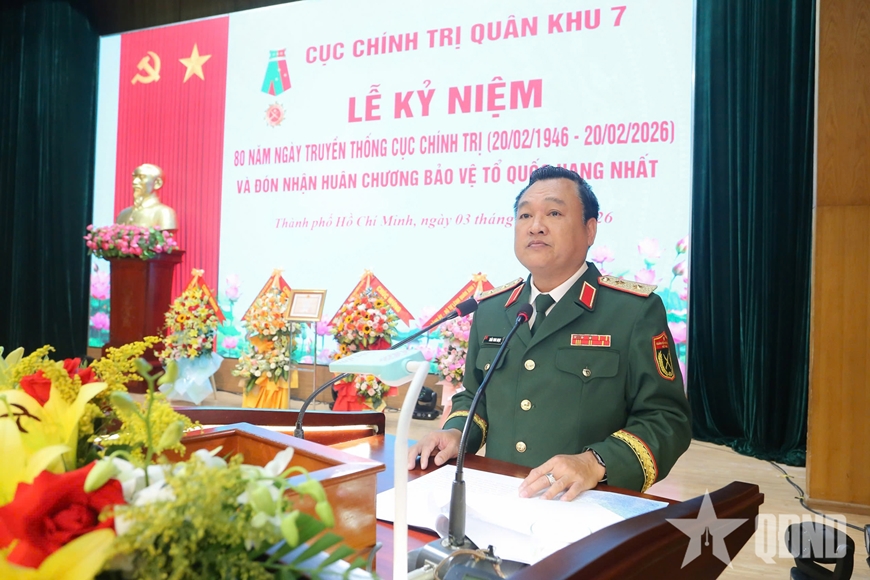 Trình bày diễn văn kỷ niệm, Thiếu tướng Trần Đức Thắng, Bí thư Đảng ủy Cục Chính trị, Phó chủ nhiệm Chính trị Quân khu 7, khẳng định: Cách đây gần 80 năm, ngày 20-2-1946, tại Chiến khu Lạc An (xã Thường Tân, TP Hồ Chí Minh), Phòng Chính trị Khu 7 - tiền thân của Cục Chính trị Quân khu 7 chính thức được thành lập. Trong hai cuộc kháng chiến giải phóng dân tộc, Cục Chính trị Quân khu 7 luôn giữ vai trò trung tâm tham mưu chiến lược về công tác Đảng, công tác chính trị, bảo đảm sự lãnh đạo tuyệt đối của Đảng đối với LLVT Quân khu.