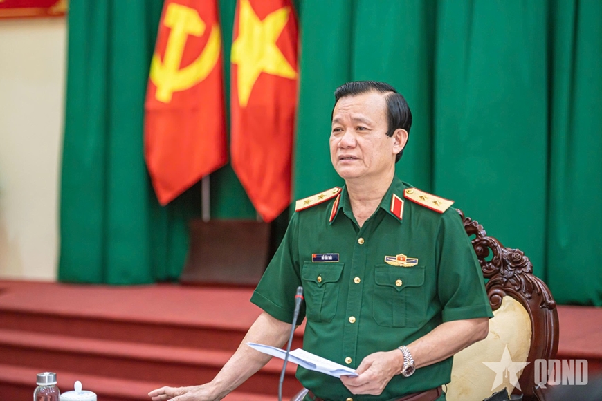 Trung tướng Hồ Văn Thái, Bí thư Đảng ủy, Chính ủy Quân khu 9 phát biểu chỉ đạo hội nghị.