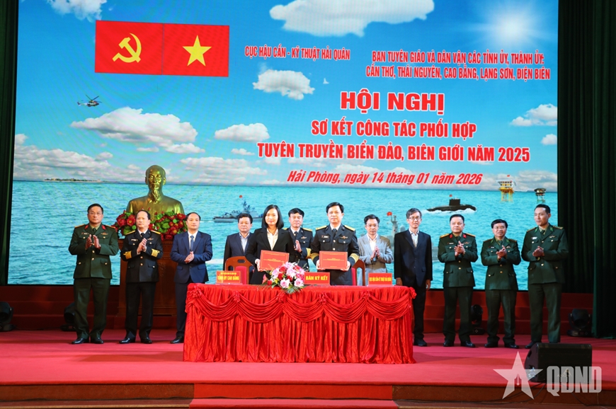 Dịp này, Cục Hậu cần - Kỹ thuật Hải quân tổ chức ký kết công tác phối hợp tuyên truyền biển, đảo, biên giới năm 2026 với các địa phương.