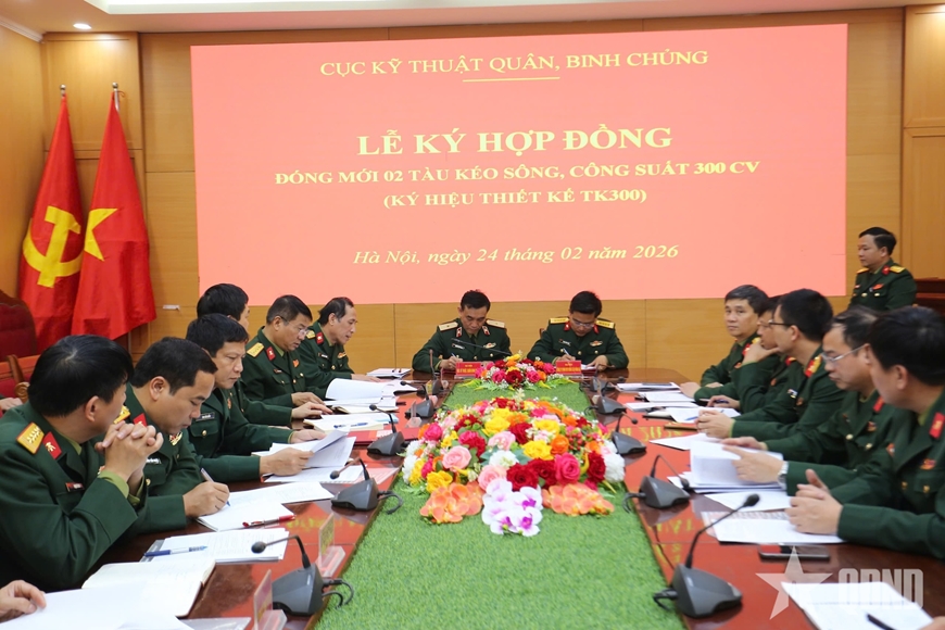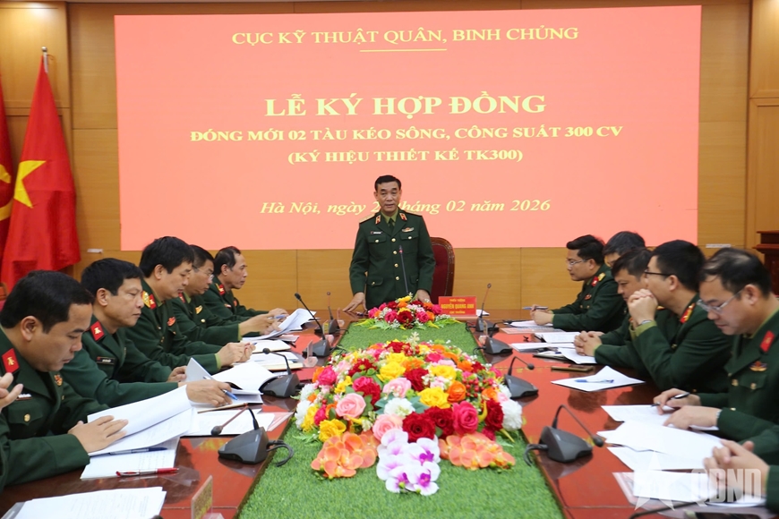 Ngày 24-2, tại Hà Nội, Cục Kỹ thuật quân, binh chủng, Tổng cục Hậu cần - Kỹ thuật và Công ty TNHH Một thành viên Đóng tàu Hồng Hà, Tổng cục Công nghiệp quốc phòng ký kết hợp đồng đặt hàng đóng mới 2 tàu kéo sông, công suất 300 CV. Thiếu tướng Nguyễn Quang Anh, Cục trưởng Cục Kỹ thuật quân, binh chủng chủ trì buổi lễ.