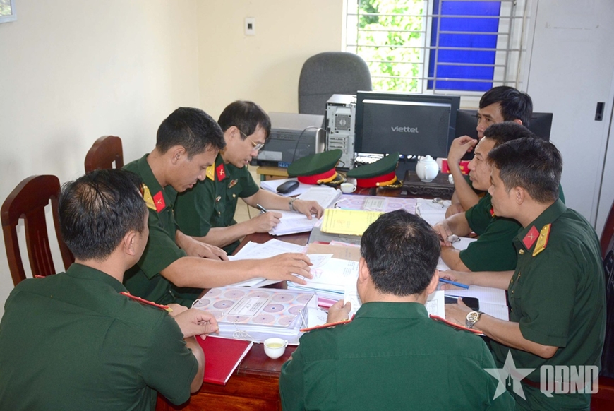 Kiểm tra hệ thống sổ sách, tổ chức biên chế tại Ban chỉ huy Phòng thủ Khu vực 2 - Hà Trung. |