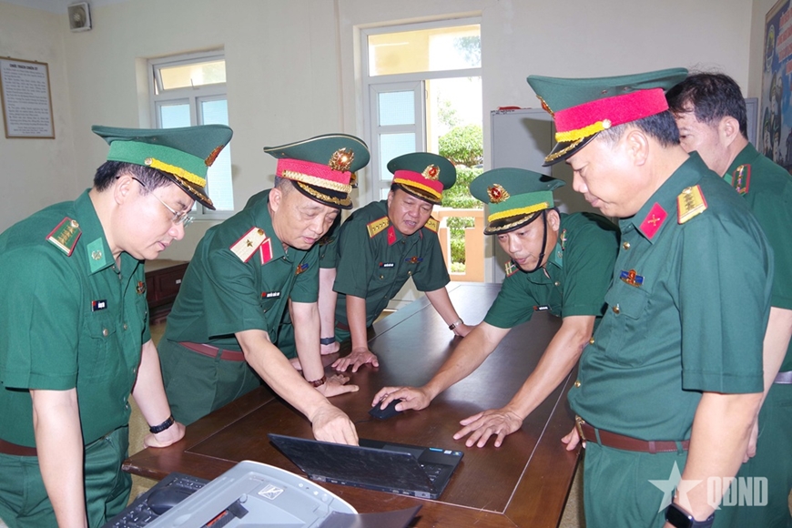 Đoàn đã tiến hành kiểm tra thực tế công tác huấn luyện, sẵn sàng chiến đấu, hệ thống sổ sách, văn kiện, giáo án tổ chức huấn luyện.