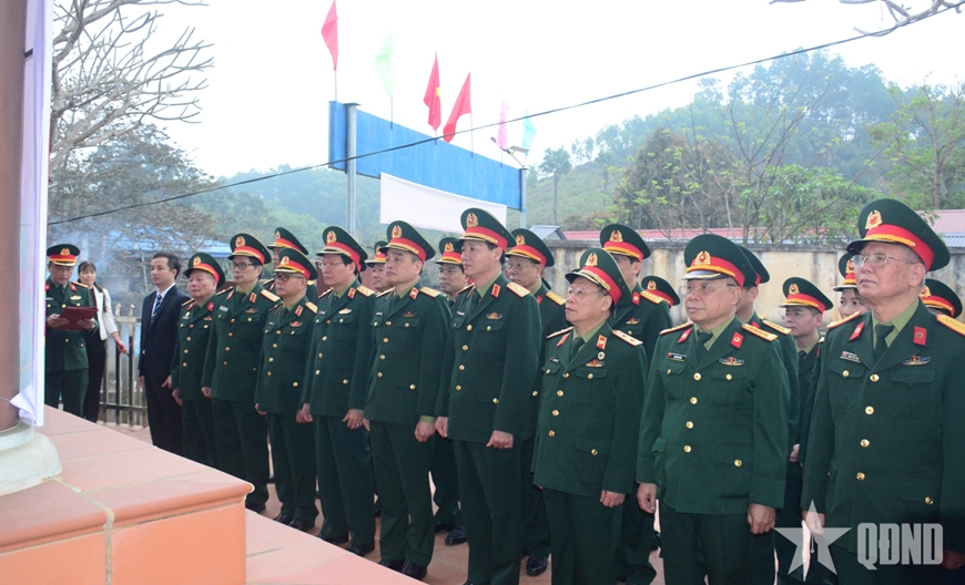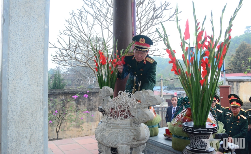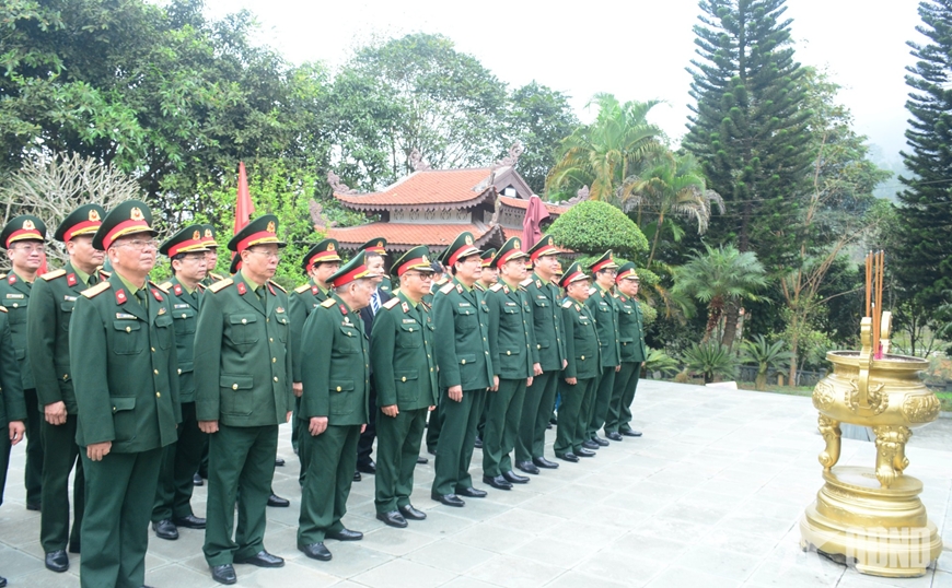 | Đoàn công tác dâng hương tại Bia di tích lịch sử Quân y Cục trong kháng chiến chống thực dân Pháp. |