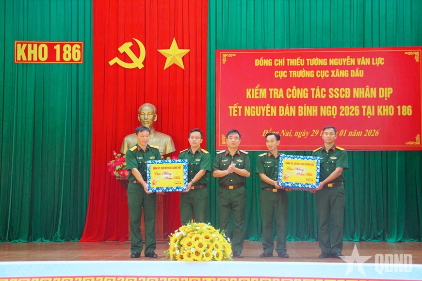 Nhân dịp chuẩn bị đón Tết Nguyên đán Bính Ngọ 2026, Thiếu tướng Nguyễn Văn Lực đã trao quà của Đảng ủy, chỉ huy Cục Xăng dầu và gửi lời chúc mừng năm mới, sức khỏe, hạnh phúc, đoàn kết, hoàn thành xuất sắc nhiệm vụ tới cán bộ, nhân viên, chiến sĩ và các đồng chí có hoàn cảnh gia đình khó khăn trong toàn Kho 186.