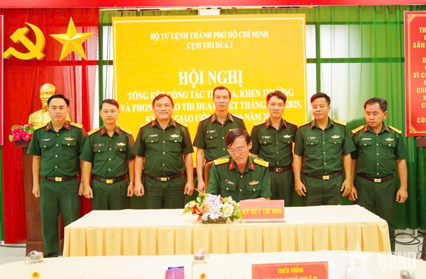 Ngày 15-1, Cụm thi đua 3, Bộ tư lệnh TP Hồ Chí Minh tổ chức Hội nghị Tổng kết công tác thi đua, khen thưởng (TĐKT) và Phong trào Thi đua Quyết thắng (TĐQT) năm 2025, ký kết giao ước thi đua năm 2026 tại Trường Quân sự Bộ tư lệnh TP Hồ Chí Minh.