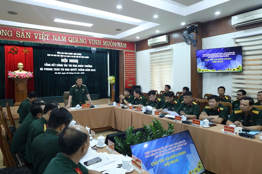 Thiếu tướng Nguyễn Đức Tăng, Phó chính ủy Tổng cục Công nghiệp quốc phòng, Phó chủ tịch Thường trực Hội đồng Thi đua - Khen thưởng Tổng cục chủ trì hội nghị.