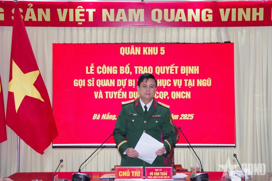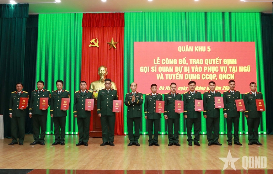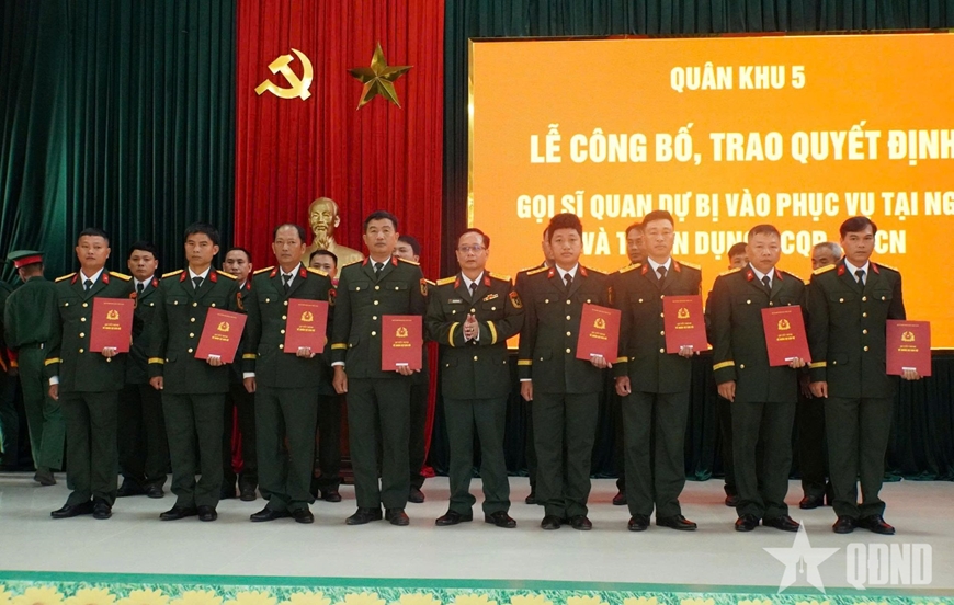 Lãnh đạo Bộ CHQS TP Đà Nẵng trao quyết định của Bộ Quốc phòng về việc gọi sĩ quan dự bị vào phục vụ tại ngũ và tuyển dụng quân nhân chuyên nghiệp.