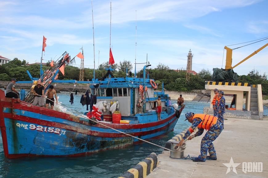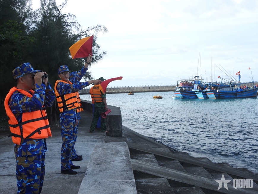 | Thông báo, hướng dẫn ngư dân đưa tàu thuyền vào âu tàu đảo Đá Tây. |