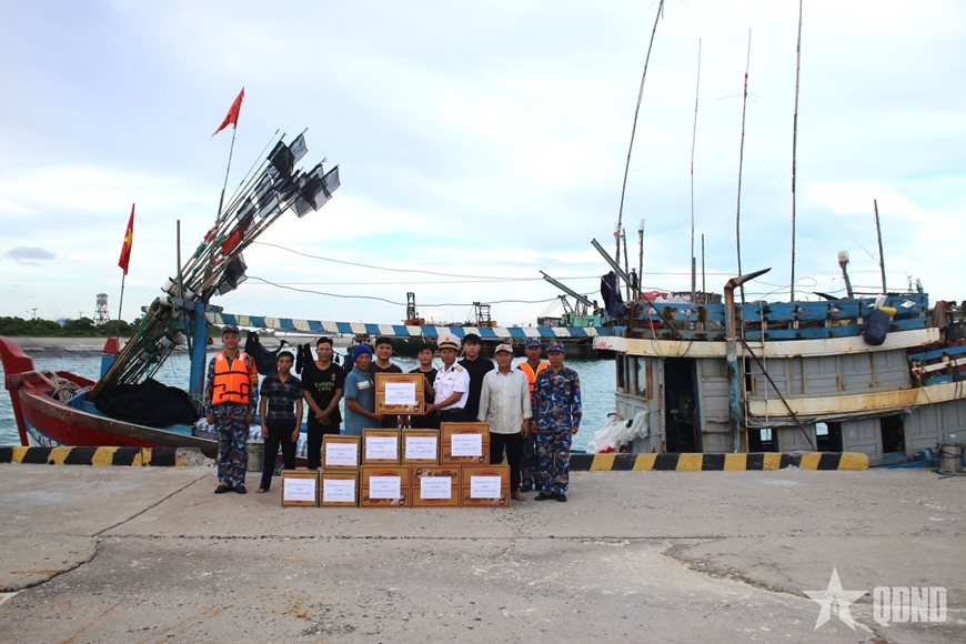 | Hỗ trợ lương thực cho ngư dân trú tránh trên đảo Song Tử Tây. |