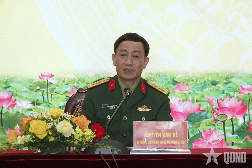 | Đại tá Nguyễn Văn Đề, Trưởng ban Công đoàn Quốc phòng trả lời câu hỏi của báo chí về Đại hội đại biểu Công đoàn Quân đội lần thứ XI tại buổi gặp mặt báo chí. |