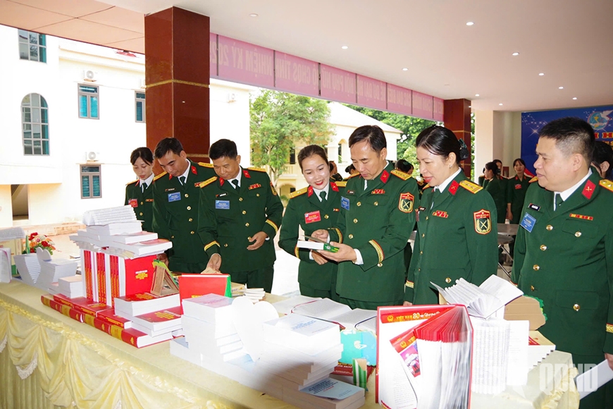 Các đại biểu tham quan khu trưng bày sản phẩm khéo tay và trưng bày sách do các Chi hội phụ nữ trưng bày tại đại hội. |