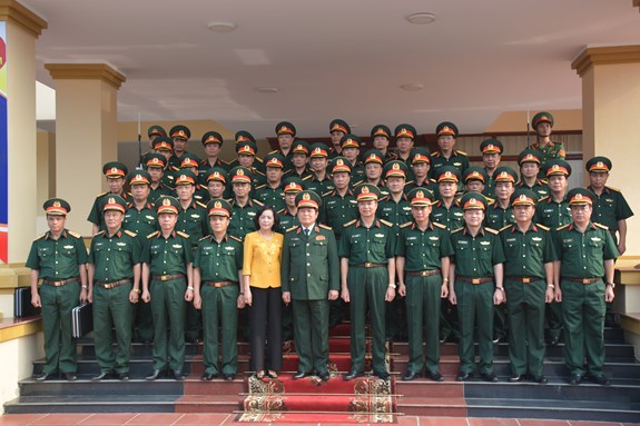 Cán bộ chủ chốt của Quân đoàn 1 dự đón Đại tướng Ngô Xuân Lịch cùng đoàn công tác. |