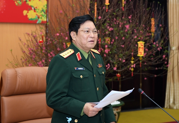 Đại tướng Ngô Xuân Lịch phát biểu kết luận tại buổi làm việc với Tổng cục Hậu cần . Ảnh: TRỌNG HẢI |