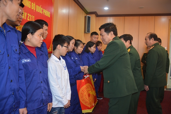 Đại tướng Ngô Xuân Lịch tặng quà tết cho công nhân viên và thân nhân cán bộ, công nhân viên Nhà máy Z111 có hoàn cảnh khó khăn.