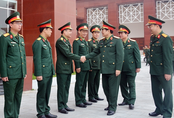 Lãnh đạo Nhà máy Z111 đón Đại tướng Ngô Xuân Lịch đến thăm.