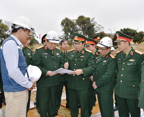 Đại tướng Ngô Xuân Lịch kiểm tra tiến độ xây dựng doanh trại mới của Bộ tư lệnh Quân khu 4. |