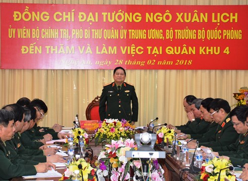 Thay mặt Quân ủy Trung ương, Bộ Quốc phòng, Đại tướng Ngô Xuân Lịch đánh giá cao sự nỗ lực, cố gắng của Đảng ủy, Bộ Tư lệnh Quân khu 4 trong lãnh đạo, chỉ đạo thực hiện nhiệm vụ năm 2017 và 2 tháng đầu năm 2018. Đại tướng Ngô Xuân Lịch ghi nhận: Mặc dù còn nhiều khó khăn, song Đảng ủy, Bộ Tư lệnh Quân khu 4 đã đoàn kết, thống nhất, chủ động tổ chức thực hiện tốt mọi nhiệm vụ được giao. Nổi bật là Đảng ủy, Bộ Tư lệnh Quân khu 4 đã quán triệt chấp hành nghiêm sự lãnh đạo, chỉ đạo của Quân ủy Trung ương, Bộ Quốc phòng, tích cực chủ động nắm chắc tình hình, phối hợp chặt chẽ với cấp ủy, chính quyền địa phương giải quyết khôn khéo, đúng luật các tình huống, không để xảy ra "điểm nóng" góp phần giữ vững an ninh chính trị, trật tự an toàn xã hội trên địa bàn. Công tác dân vận của LLVT Quân khu đạt được kết quả tốt, có nhiều tư duy mới, quyết tâm cao trong quá trình thực hiện. Chất lượng tổng hợp và sức mạnh chiến đấu của LLVT Quân khu không ngừng được nâng lên; tổ chức huấn luyện, SSCĐ nghiêm túc; tham gia hội thi, hội thao đạt nhiều thành tích cao. Quân khu 4 thực sự là điểm sáng trong thực hiện phong trào thi đua quyết thắng, xây dựng nông thôn mới và giúp dân xóa đói giảm nghèo; đặc biệt tham gia có hiệu quả trong giúp dân phòng chống, khắc phục hậu quả thiên tai bão lũ. Bộ Tư lệnh Quân khu đã chỉ đạo các địa phương, đơn vị làm tốt công tác đối ngoại quốc phòng, xây dựng đường biên giới ổn định, góp phần tăng cường mối quan hệ truyền thống với nước bạn Lào...