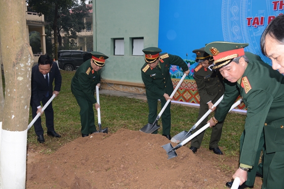 Lãnh đạo Bộ Quốc phòng trồng cây lưu niệm trong khuôn viên Bộ CHQS tỉnh Hòa Bình.