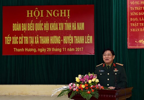Cùng tham gia buổi tiếp xúc cử tri có các đồng chí: Thiếu tướng Vũ Hải Sản, Ủy viên Trung ương Đảng, Tư lệnh Quân khu 3; Nguyễn Đình Khang, Ủy viên Trung ương Đảng, Bí thư Tỉnh ủy Hà Nam; Phùng Đức Tiến, Phó chủ nhiệm Ủy ban Khoa học Công nghệ và Môi trường của Quốc hội và các thành viên Đoàn đại biểu Quốc hội tỉnh Hà Nam.