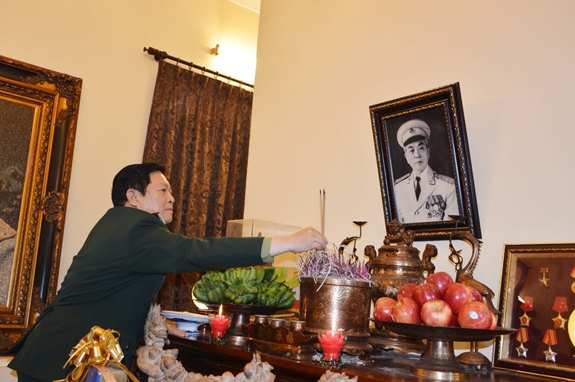 Bộ trưởng Bộ Quốc phòng Ngô Xuân Lịch thắp hương tưởng nhớ Đại tướng Võ Nguyên Giáp.