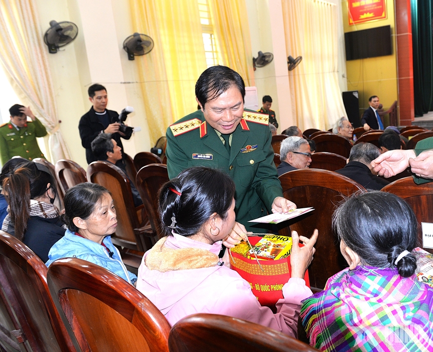 | Đại tướng Nguyễn Tân Cương trao quà Tết của Quân ủy Trung ương, Bộ Quốc phòng tặng Quân đoàn 12. |