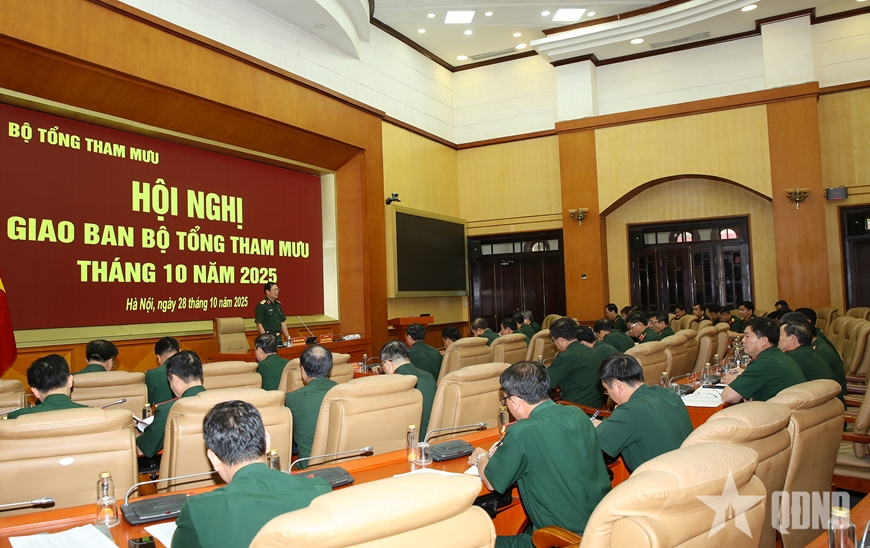 Báo cáo tại hội nghị khẳng định, tháng 10-2025, Bộ Tổng Tham mưu đã chỉ đạo toàn quân duy trì nghiêm chế độ trực sẵn sàng chiến đấu, theo dõi nắm chắc tình hình, nhất là các địa bàn trọng điểm, kịp thời tham mưu, xử lý hiệu quả các tình huống, không để bị động, bất ngờ. Các đơn vị đã kịp thời điều chỉnh kế hoạch huấn luyện để giúp các địa phương khắc phục hậu quả hoàn lưu bão số 10 và số 11; tổ chức huấn luyện, diễn tập, hội thi, hội thao cho các đối tượng bảo đảm chặt chẽ, đúng chương trình, kế hoạch.