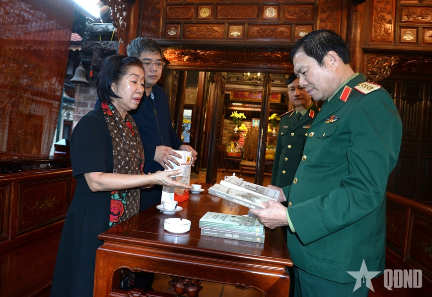 Đại tướng Nguyễn Tân Cương thăm hỏi, trò chuyện với thân nhân gia đình Đại tướng Nguyễn Chí Thanh và Thượng tướng Nguyễn Chí Vịnh.