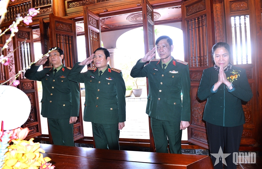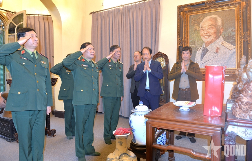 | Đại tướng Nguyễn Tân Cương và đoàn công tác tri ân Đại tướng Võ Nguyên Giáp. |