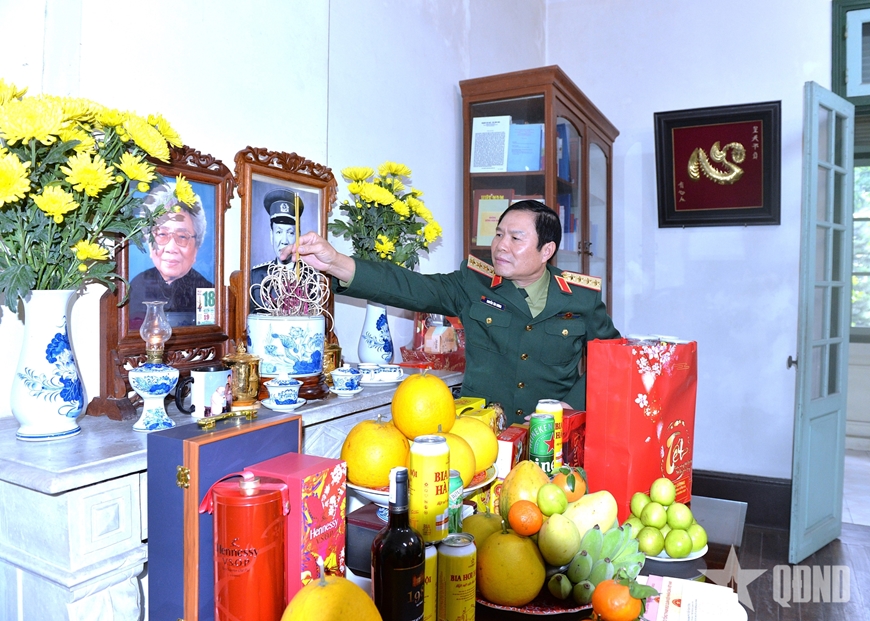 Đại tướng Nguyễn Tân Cương và đoàn công tác đã tới thăm gia đình, thành kính dâng hương, dâng hoa tưởng nhớ, tri ân cố Tổng Bí thư Lê Khả Phiêu, nguyên Chủ nhiệm Tổng cục Chính trị; cố Chủ tịch nước Lê Đức Anh, nguyên Bộ trưởng Bộ Quốc phòng; các đồng chí nguyên Bộ trưởng Bộ Quốc phòng: Đại tướng Võ Nguyên Giáp, Đại tướng Văn Tiến Dũng, Đại tướng Đoàn Khuê, Đại tướng Phùng Quang Thanh; Đại tướng Chu Huy Mân, nguyên Chủ nhiệm Tổng cục Chính trị; các đồng chí nguyên Tổng Tham mưu trưởng, nguyên Thứ trưởng Bộ Quốc phòng: Đại tướng Lê Trọng Tấn, Đại tướng Hoàng Văn Thái, Thượng tướng Nguyễn Khắc Nghiên; Trung tướng Nguyễn Hải Bằng, nguyên Phó giám đốc Học viện Quốc phòng.