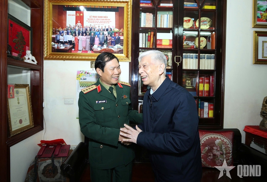 Đến thăm, chúc Tết Đại tướng Phạm Văn Trà, nguyên Ủy viên Bộ Chính trị, nguyên Phó bí thư Đảng ủy Quân sự Trung ương (nay là Quân ủy Trung ương), nguyên Bộ trưởng Bộ Quốc phòng; Đại tướng Đỗ Bá Tỵ, nguyên Ủy viên Trung ương Đảng, nguyên Phó chủ tịch Quốc hội, nguyên Ủy viên Thường vụ Quân ủy Trung ương, nguyên Tổng Tham mưu trưởng, nguyên Thứ trưởng Bộ Quốc phòng; Trung tướng, Anh hùng LLVT nhân dân Đặng Quân Thụy, nguyên Phó chủ tịch Quốc hội, Đại tướng Nguyễn Tân Cương thăm hỏi sức khỏe, đời sống và thông tin một số kết quả nổi bật của toàn quân trong năm 2025.