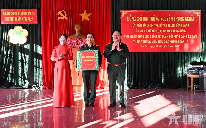 Sáng 29-12, Đại tướng Nguyễn Trọng Nghĩa, Ủy viên Bộ Chính trị, Bí thư Trung ương Đảng, Ủy viên Thường vụ Quân ủy Trung ương, Chủ nhiệm Tổng cục Chính trị, cùng đoàn công tác đến thăm, tặng quà học sinh Trường Mầm non 20-2 (Binh đoàn 15). Tại đây, đồng chí Chủ nhiệm Tổng cục Chính trị lưu ý Binh đoàn 15 và các đơn vị phải dành những gì tốt nhất cho các cháu, các cháu chính là tương lai của nước nhà.