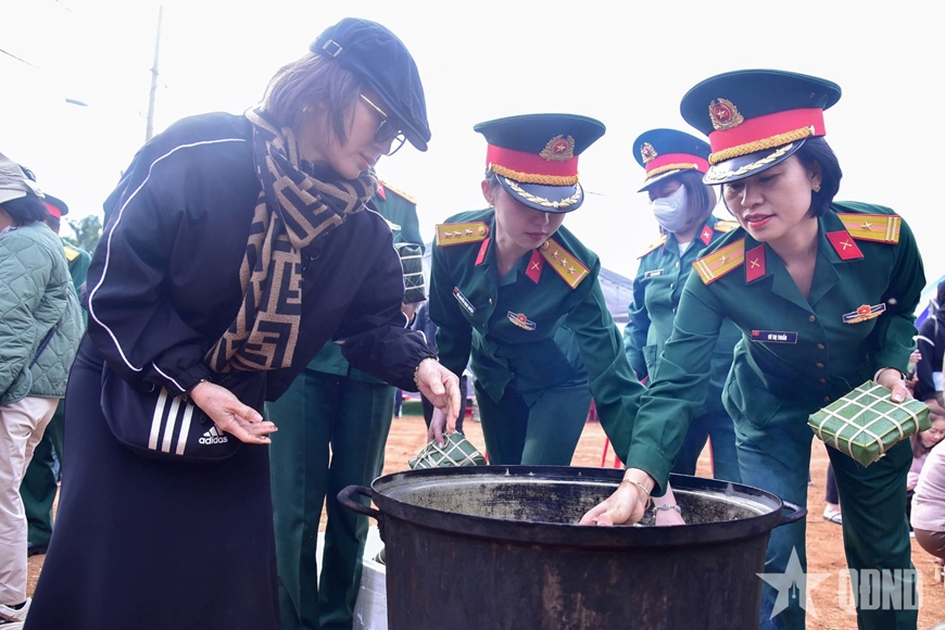 | Hội thi gói, nấu bánh chưng tại chương trình "Xuân chiến sĩ" lần thứ XI năm 2026. |