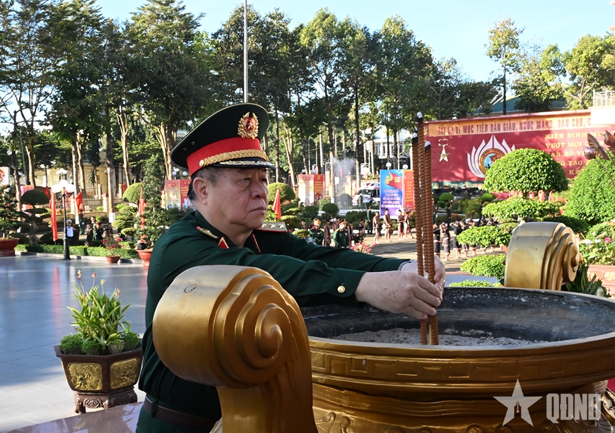 | Đại tướng Nguyễn Trọng Nghĩa và các đại biểu thành kính tưởng nhớ Chủ tịch Hồ Chí Minh. |