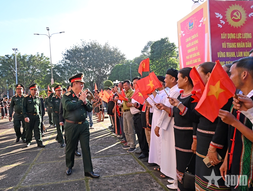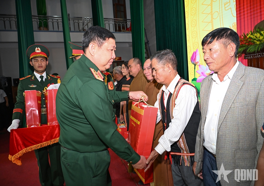 Nhân dịp này, Đại tướng Nguyễn Trọng Nghĩa và các đại biểu đã dâng hoa, dâng hương tại Tượng đài Chủ tịch Hồ Chí Minh trong khuôn viên Binh đoàn 15; trao quà tặng các già làng, trưởng bản, trưởng thôn, người có uy tín, chức sắc tôn giáo; thăm, tặng quà cô, trò Trường Mầm non 20-2.