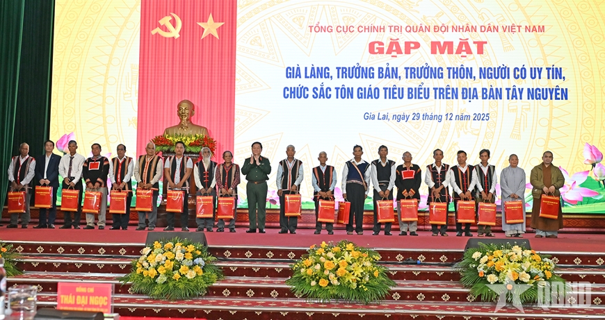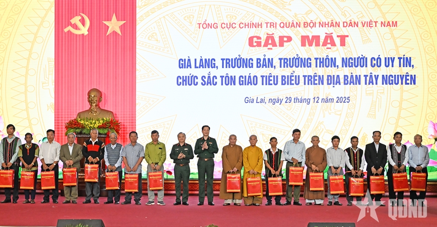 Thời gian tới, đồng chí Chủ nhiệm Tổng cục Chính trị mong muốn các già làng, trưởng bản, trưởng thôn, người có uy tín, chức sắc tôn giáo, tiếp tục giữ vững vai trò là “thủ lĩnh tinh thần”, trung tâm đoàn kết, gương mẫu, đi đầu trong các hoạt động của buôn làng, giáo họ; phát huy vai trò, uy tín, tầm ảnh hưởng của mình trong tuyên truyền, vận động dòng họ, đồng bào, tín đồ, giáo dân thực hiện tốt đường lối, chủ trương của Đảng, chính sách pháp luật của Nhà nước.